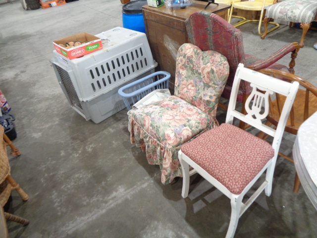 HOUSEHOLD: 2 different Lighted Curio cabinet, 7’ tall, one 36” wide, other 33” wide * 6’ tall lighted curio, 30” wide * Queen size bed * Double bed * Oak commode * Lazyboy rocker recliner * cloth rocker recliner * numerous occasional chairs * dinette table, 4 roller chairs, leaf * couch * matching chest and dresser * 4 dr. oak chest * chest * 2 nightstands * office chair * wicker furniture * corner shelves * end tables w/ dropleaves * ice cream table w/ 2 chairs * oak porch swing * 3 dining room hutches * curved glass oak hutch * 2 telephone benches * 3 barstools * Lane cedar chest * wicker bakers shelf and others * Pictures * radios and CDs * infrared heater * 2 card table and chair sets * Philips 42” HDTV and Vizio 20” flatscreens * stereo * Kitchen pots and pans, glassware, utensils * numerous lamps, end tables, coffee table * many boxes of household * picnic baskets and baskets * 2 Saladmaster salad makers *