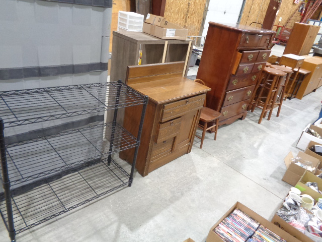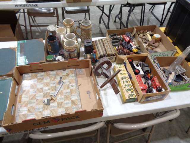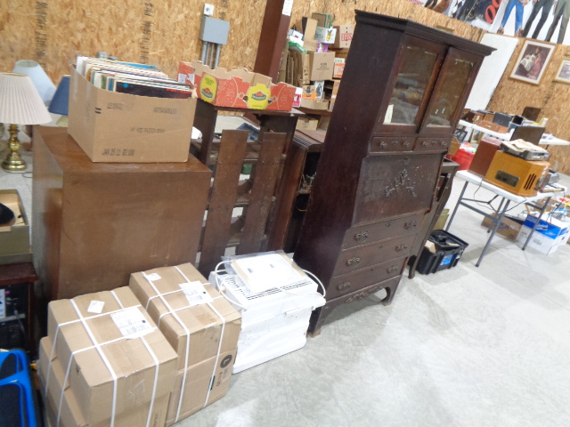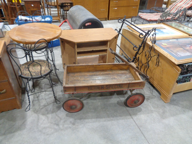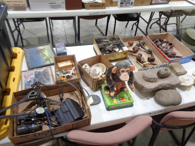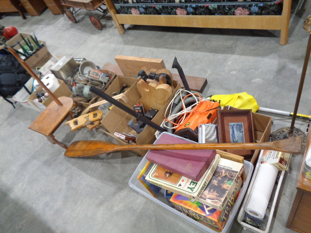 COLLECTIBLES: Oak writing desk/china * small oak buffet * metal and cast single bed frame * “Heider Special” coaster wagon, wood * Keen Kutter circ. saw * many Indian stones * collectible rocks * 30 Smoking pipes * stereo scope and cards * many Kossuth County history books * 2 barn pullies * brass can * hats * 5 gal western crock, cracked * carpenters chest * Rat Fink alum figurine * Kellogg wood wall telephone * 2 wood shaft golf clubs * X box game system * stoneware downspout tray * Plastic models * ice cream table and 2 chairs * 33 and 45 records, many more * Beatles Collectibles, albums, figurines, pictures, and more * porcelain smoking pipe * pocket knives, 2 drop knives * Snap On collectibles *