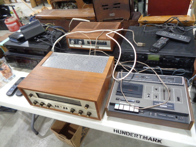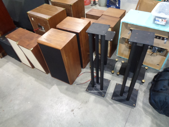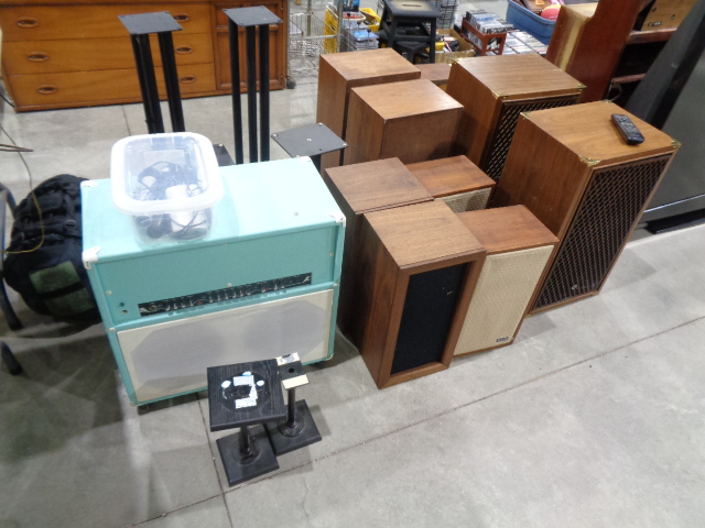 MODERN ELECTRONICS: 22+ stereo components * 11+ sets of stereo speakers and stands * Electric Guitar making supplies * 2 stereo stands * Mitsubishi 72” flatscreen TV *