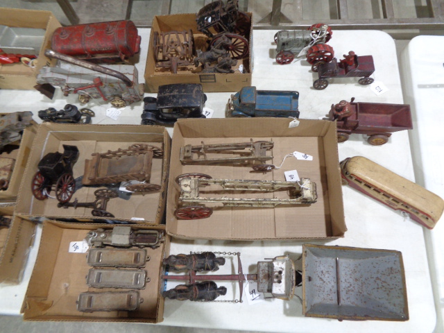 Marx, Gunerman, Lehman wind ups * 30s + 40s Buddy L Trucks and construction * pressed steel, tin truck toys * boats from 20s and 30s * Cast iron Hubley, Marx, Kenton, Arcade * Stationary Steam Engines, Custom boat with steam engine * trains of all varieties * Salesman sample fanning mill * few oil cans * paper items * Late Model CIH farm Toys, Many Prestige * plus many other farm toys * plus more *